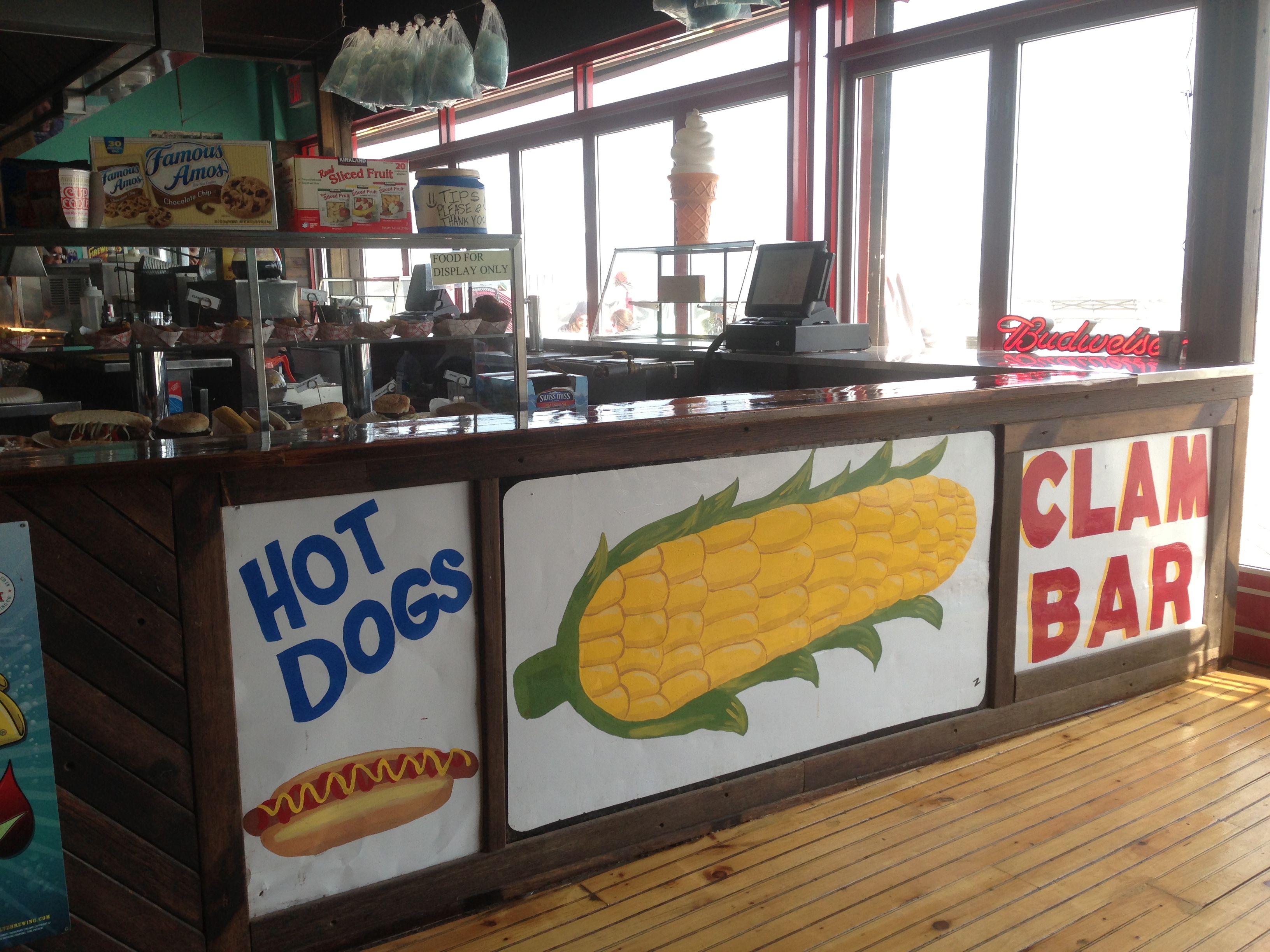 Flying trays were also a common occurrence. A neon Budweiser sign fell from the ceiling.  I also saw a woman swing her three year old child into the mouth of a garbage can repeatedly, much to the child’s delight.  There’s something slightly on edge and chaotic about Ruby’s, but that is part of the charm.  Spontaneous dancing, a great juke box, fried food, and a wide selection of beers and cocktails all make this a popular hangout. And on a gorgeous summer day, they take the doors off the place so we can enjoy the view of the beach at Coney Island and watch all the beautiful freaks walk by.